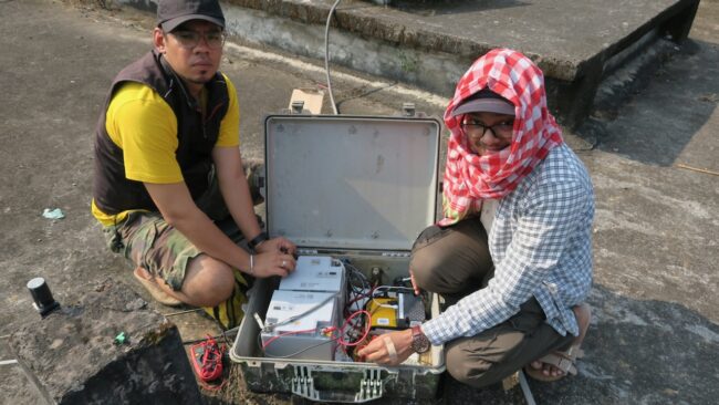 Di bawah pemandangan indah di sini terdapat megathrust subduksi, kelanjutan yang sama yang terjadi pada gempa bumi Sumatera tahun 2004. Meskipun kita tidak memperkirakan gempa berkekuatan 9 skala Richter seperti di Sumatera, ada potensi terjadinya gempa di atas skala Richter 8, yang akan menimbulkan bencana di negara berpenduduk padat ini. Saya memiliki lima stasiun di seluruh perbukitan dan lembah Sylhet dan suatu hari kami akan mengunjunginya untuk melakukan perbaikan. Dengan stasiun GNSS, kita dapat melihat perubahan tanah secara perlahan dan mencoba menentukan apakah tanah tersebut secara elastis menyimpan energi untuk gempa bumi, atau apakah sebagian pergerakannya merupakan deformasi aseismik yang akan menurunkan bahaya gempa bumi.
