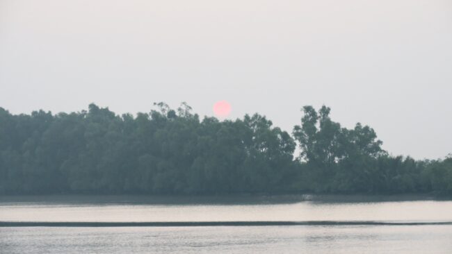 Setelah selesai, kami berlayar di Bawali yang telah menunggu di alur Sungai Pusur selebar 10 km. Letaknya cukup jauh di lepas pantai karena kawasan ini telah diluncurkan. Begitu kami berada di kapal, Bawali melintasi Sundarbans menuju perhentian terakhir saya.